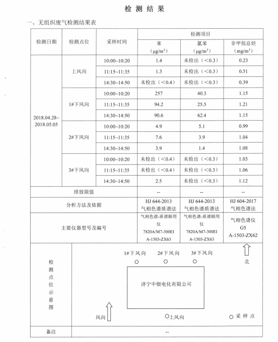 公司2018年4月26日委托山東嘉源檢測(cè)技術(shù)公司對(duì)vocs進(jìn)行了檢測(cè),檢測(cè)結(jié)果如下圖:……